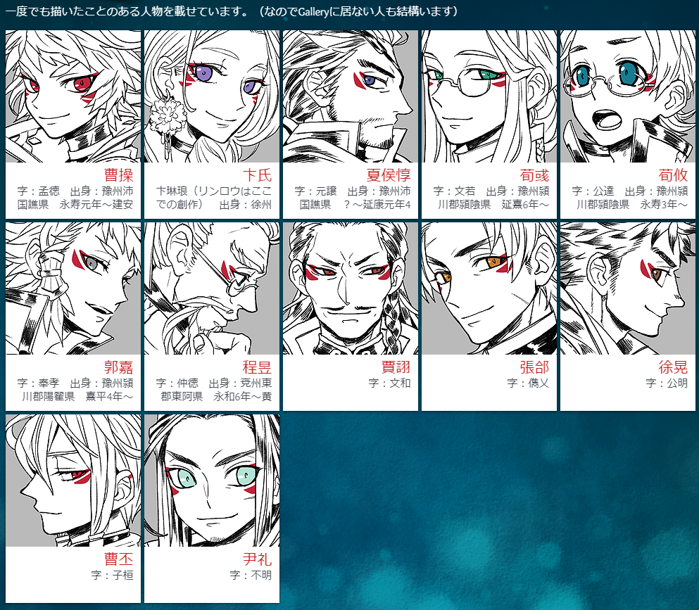 旧リストの並びの都合上、このメンツの中に突然の尹礼なあたりウチだなぁという感じがして少し面白い。尹礼さんと呉敦さん字不明なんですよね…なんかいい感じのを捏造してみようかな。