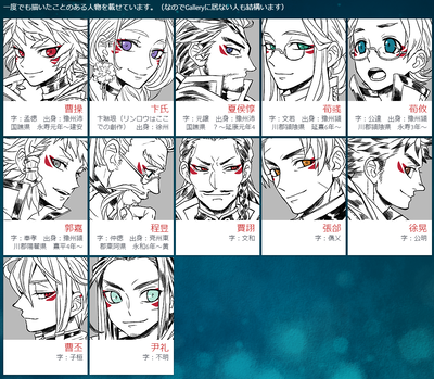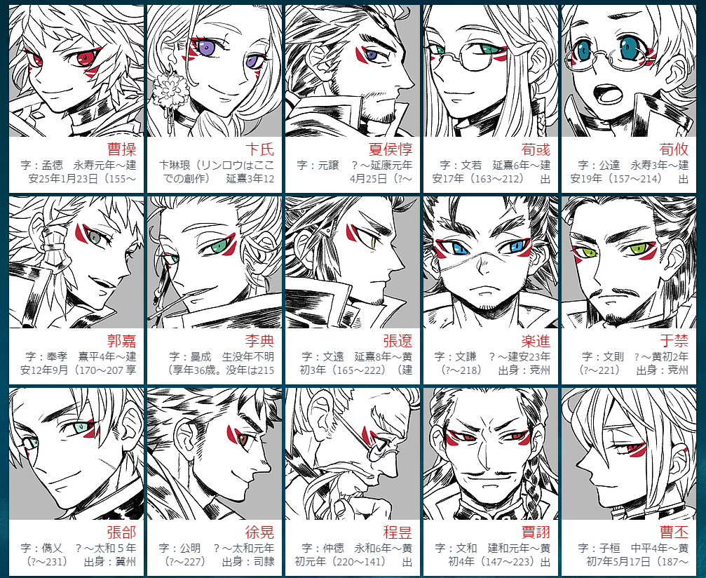 皇帝(霊弁献)のみなさま・曹操の娘たち(憲節華)・満寵・趙雲・徐州攻めの命令を下すシーン・臧覇が曹操に降るシーン・曹操の著書について …など。結構あるぞ楽しいな。